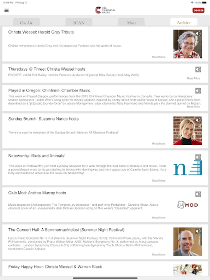 • The All Classical Portland Radio App displays the web page associated with the program or program segment you are listening to On Demand so you can explore for more information.