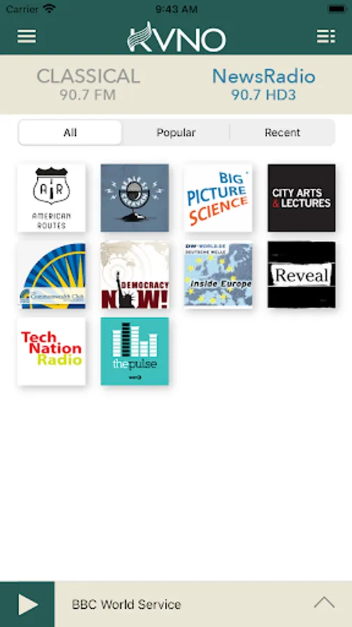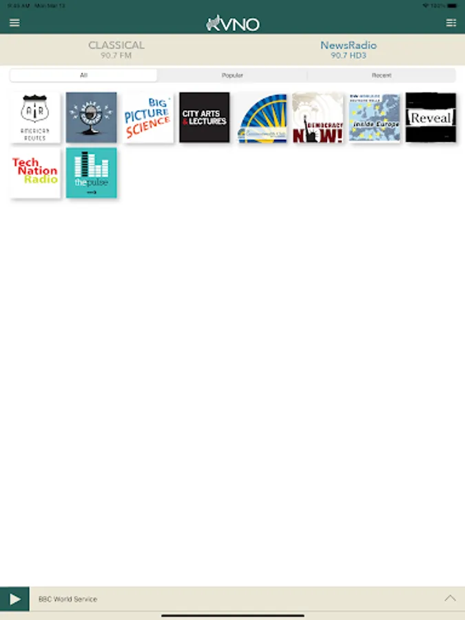 The KVNO Public Radio App allows you to listen to KVNO, pause and rewind the live audio, and view the program schedule for KVNO all at once! You can explore On Demand content, search for programs, bookmark a program for later, and wake up to KVNO with the alarm clock!