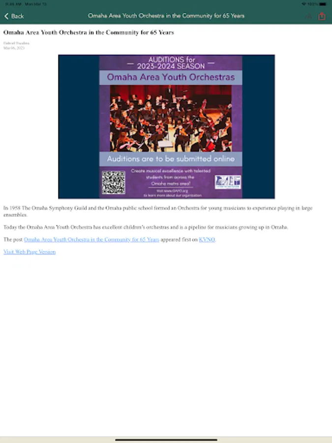 • The KVNO Public Radio App displays the web page associated with the program or program segment you are listening to On Demand so you can explore for more information.