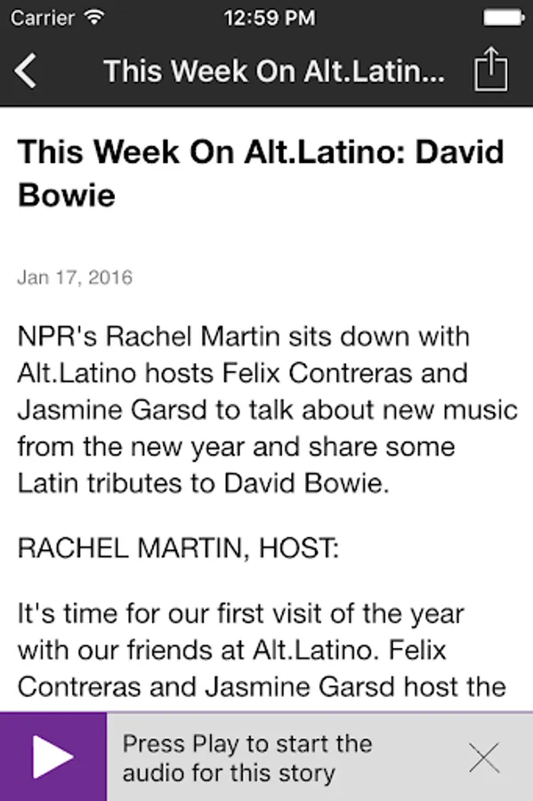 • The unique “Search Public Radio” feature finds stories or programs across hundreds of stations and web pages and makes it easy to play instantly.