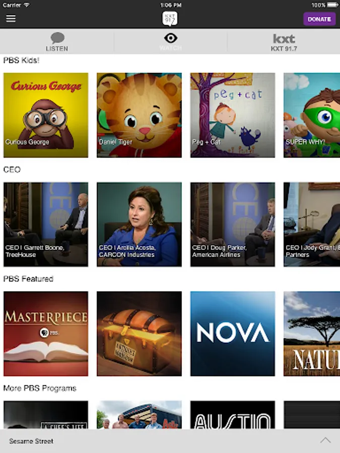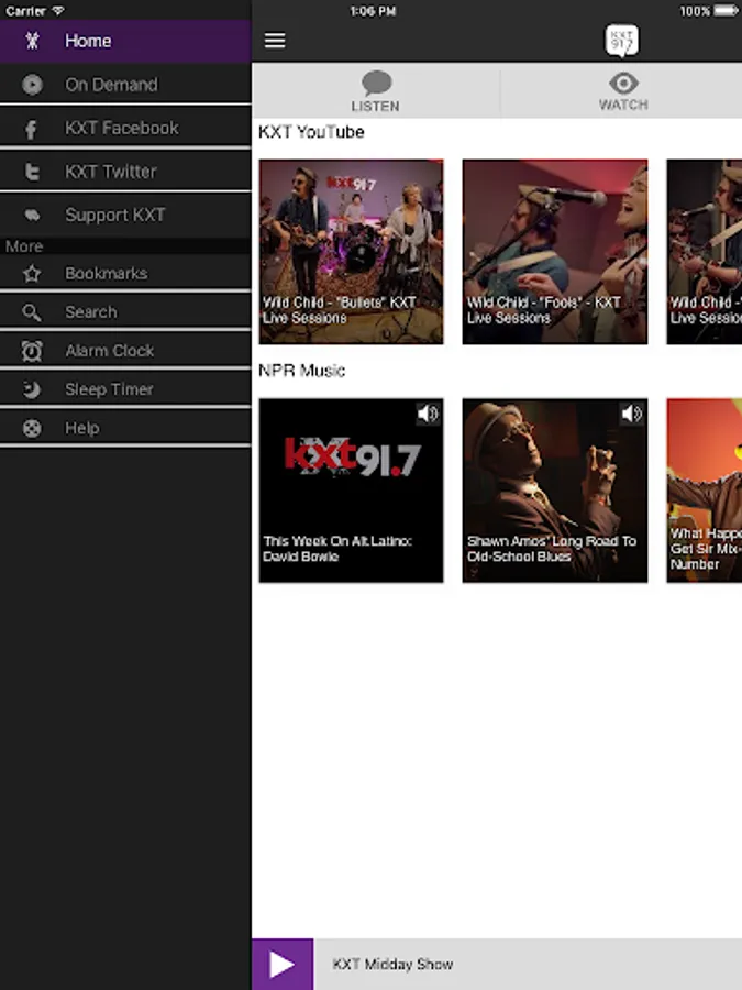 The KXT Public Media App allows you to listen to and watch KXT radio and television, pause and rewind the live audio, and view the program schedule all at once! You can explore On Demand content, search for programs, bookmark a program for later, and wake up to KXT with the alarm clock!