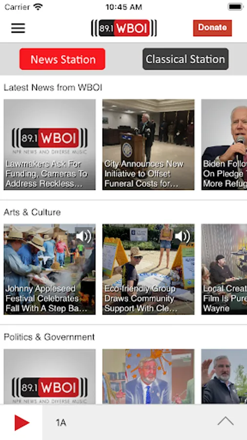 • Listen to live streams from Northeast Indiana Public Radio even while traveling! Start the app and your favorite station starts playing – no clicks to start listening.