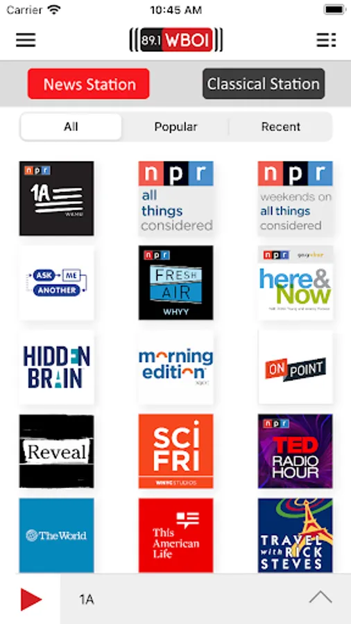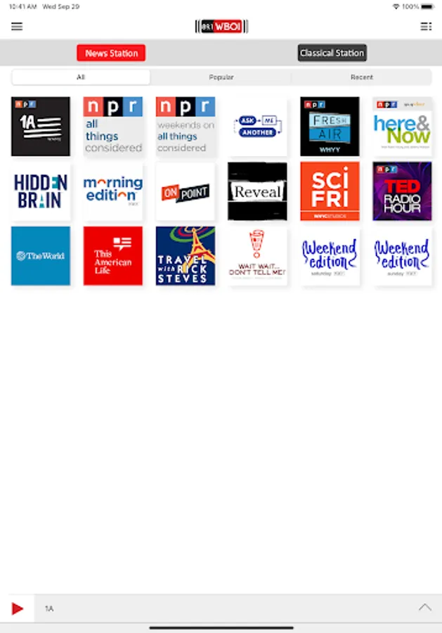 • When listening to programs, individual segments (when available) are listed so you can review and choose one or listen to the entire program.