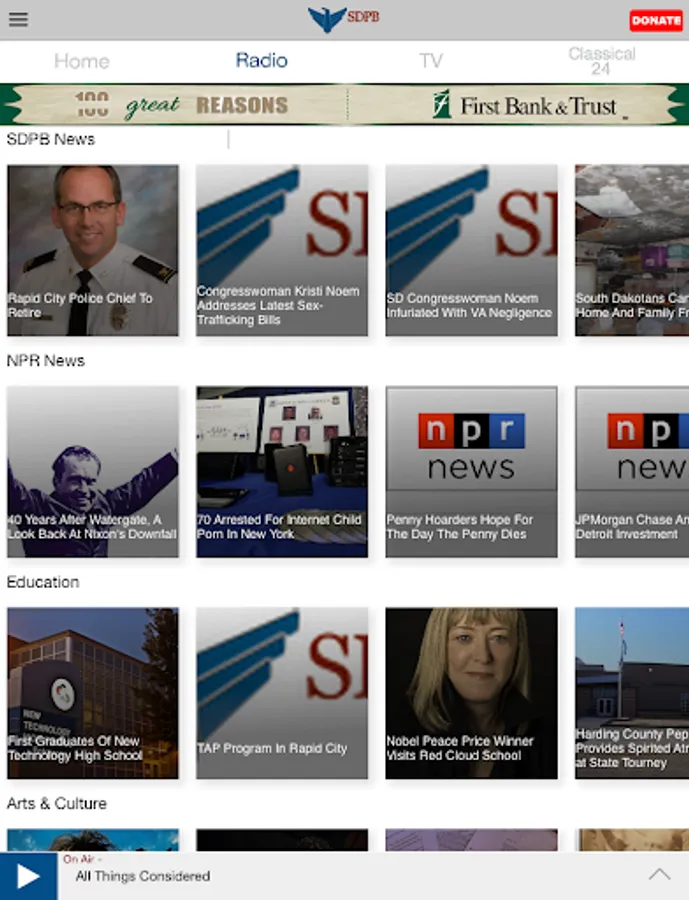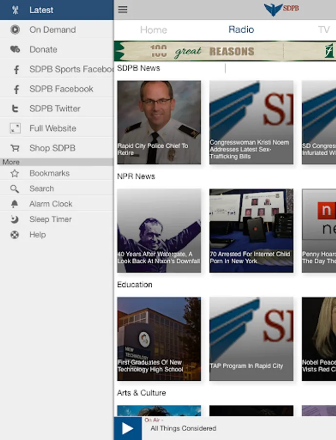 The SDPB App is brought to you by the people at South Dakota Public Broadcasting and Public Media Apps. We work to provide our valued listeners with great solutions to find what you want, when you want it, and where you want it.