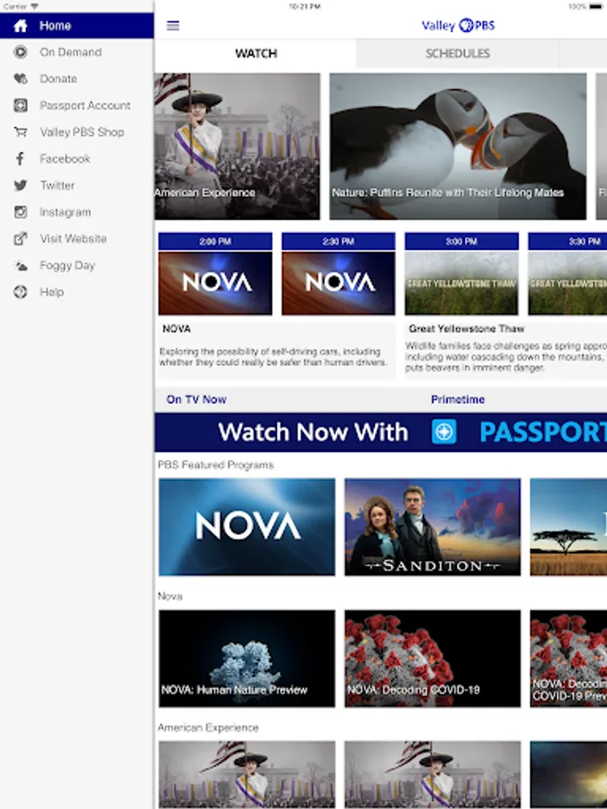 - Quick access to related social media channels, local events calendars and other news and updates from Valley PBS