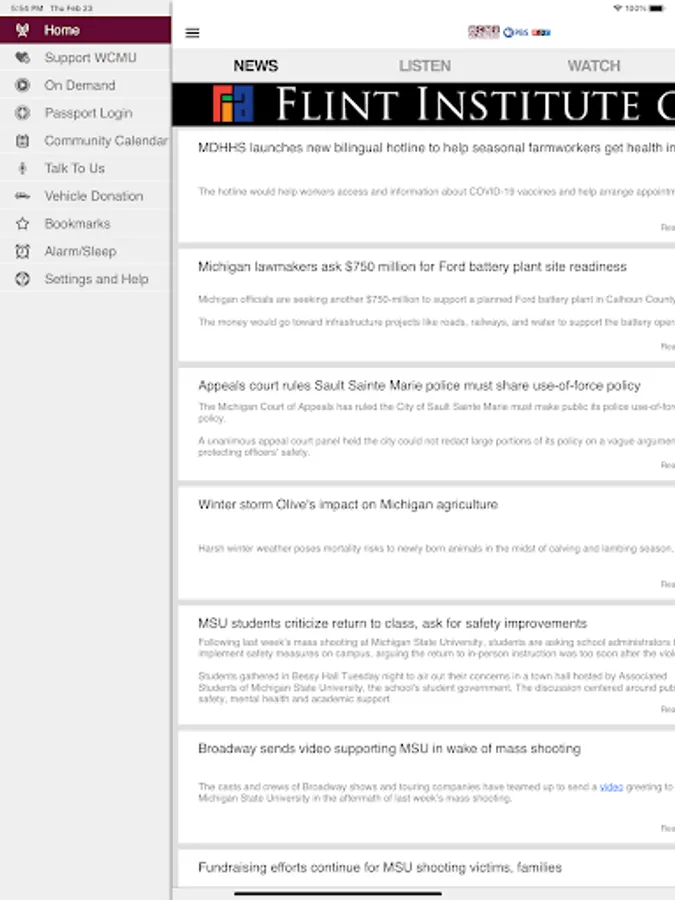 • The WCMU Public Media App displays the web page associated with the program or program segment you are listening to On Demand so you can explore for more information.