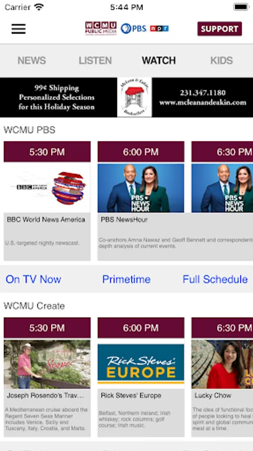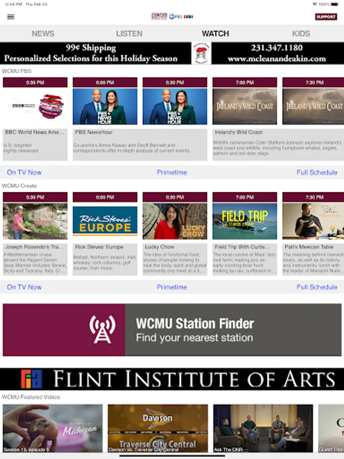• Integrated program schedule for WCMU’s channels.