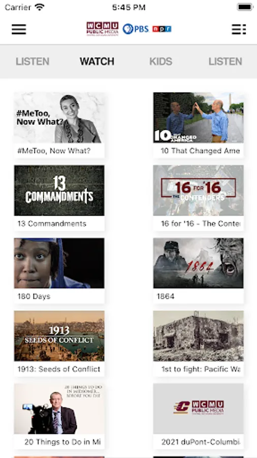 The WCMU Public Media App allows you to watch and listen to all of WCMU’s programs, Radio and TV! The app provides On-Demand content of all your favorite shows, live streaming of the radio channels, PBS Kids! content with parental controls, easy access to the live Radio and TV program schedule plus the ability to explore additional content!