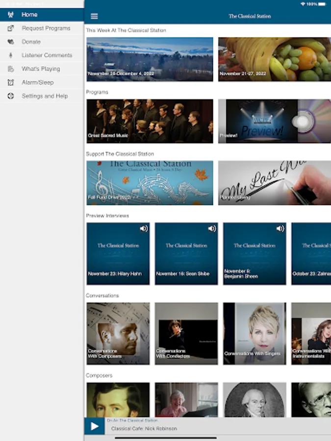 The The Classical Station App allows you to listen to The Classical Station, check out Daily Playlists, and view the program schedule for The Classical Station stream all at once! You can even wake up to The Classical Station with the alarm clock!