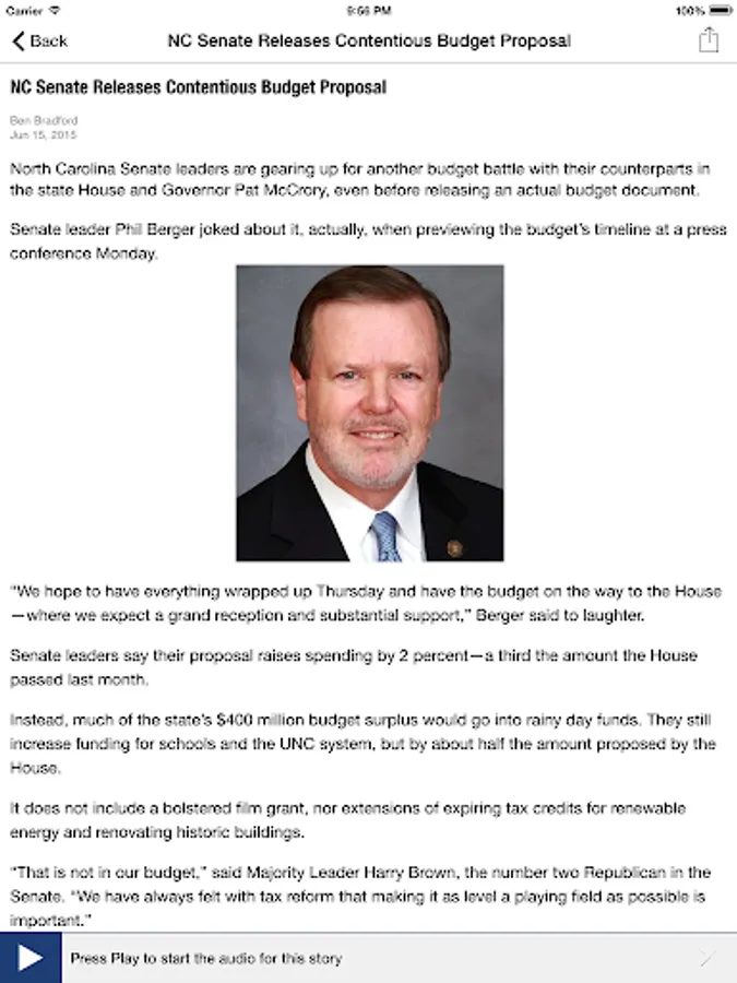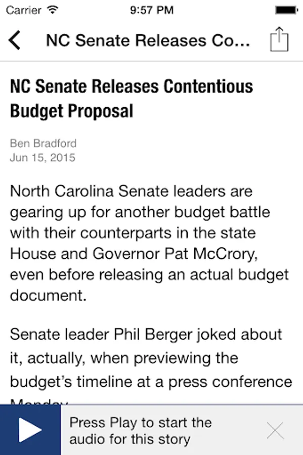 • Access public radio programs from multiple content providers (NPR, PRI, APM and WFAE) easily and quickly.