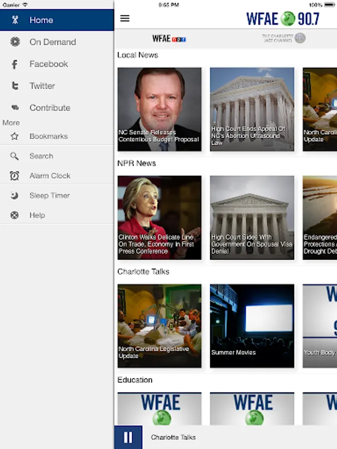 The WFAE Public Radio App allows you to listen to WFAE live, pause and rewind the live audio, and view the program schedule for the WFAE stream all at once! You can explore On Demand content, search for stories, bookmark a story for later, and wake up to WFAE with the alarm clock!