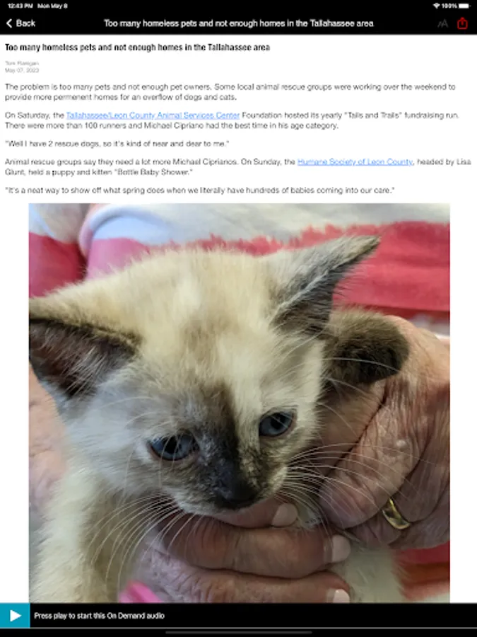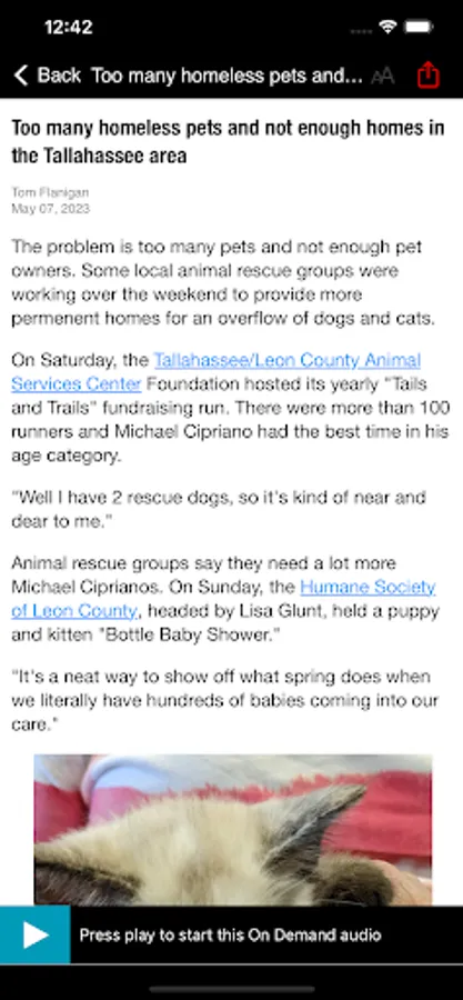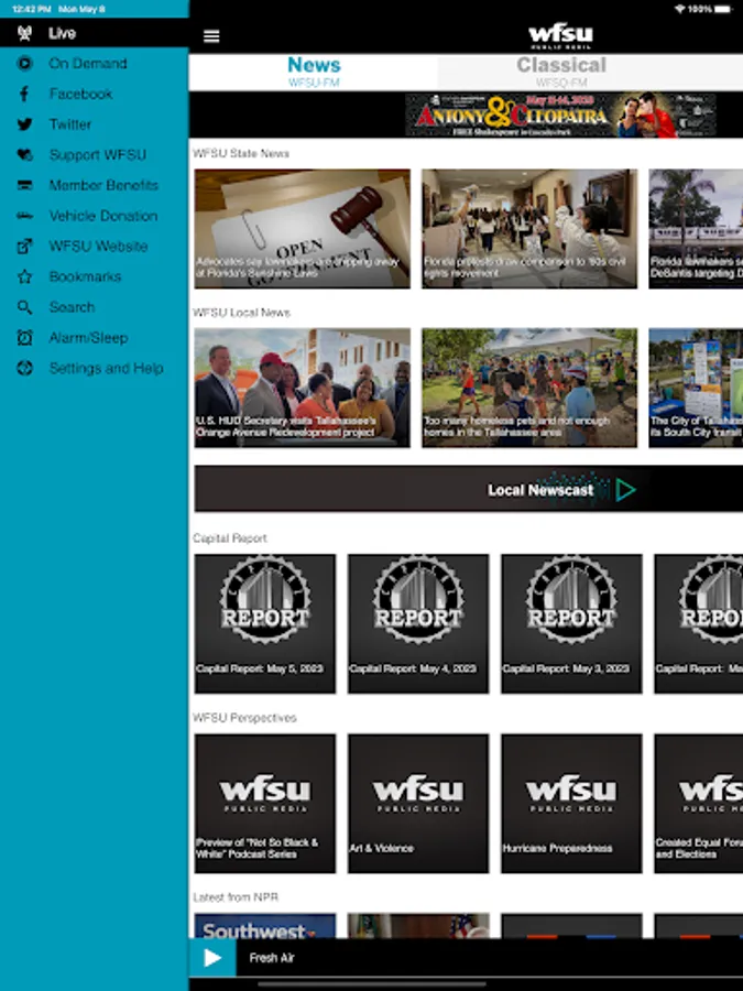 • The WFSU Public Radio App displays the web page associated with the program or program segment you are listening to On Demand so you can explore for more information.