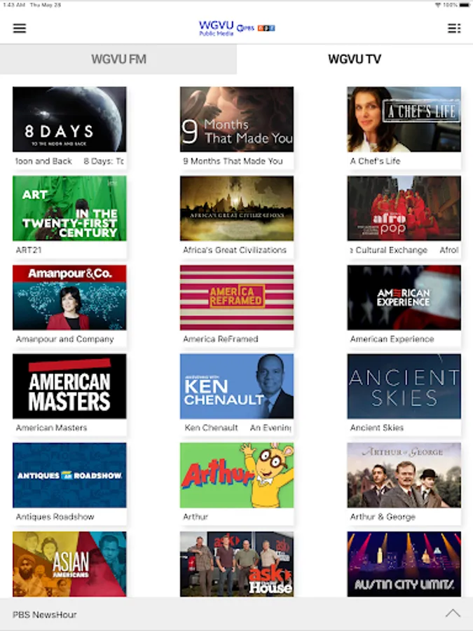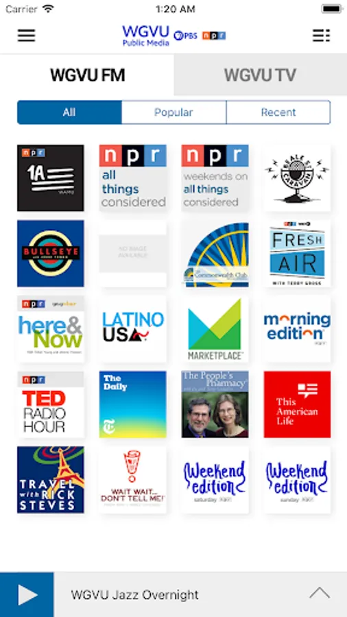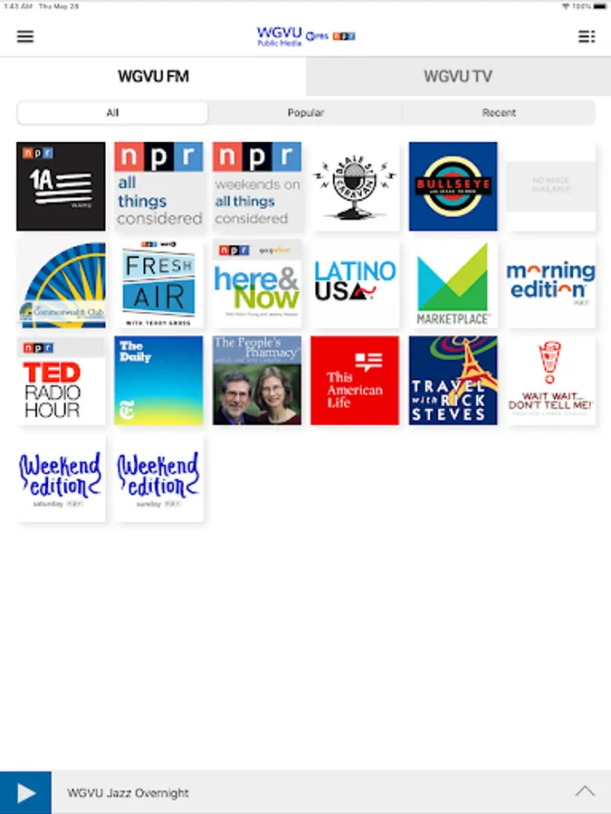 • Access public radio programs from multiple content providers (NPR, PRI, APM and WGVU) easily and quickly.