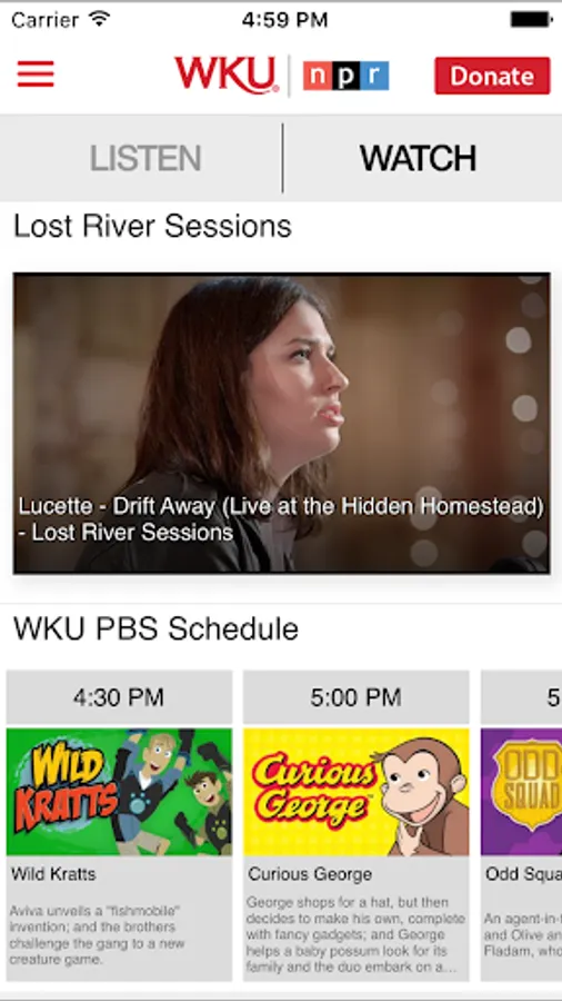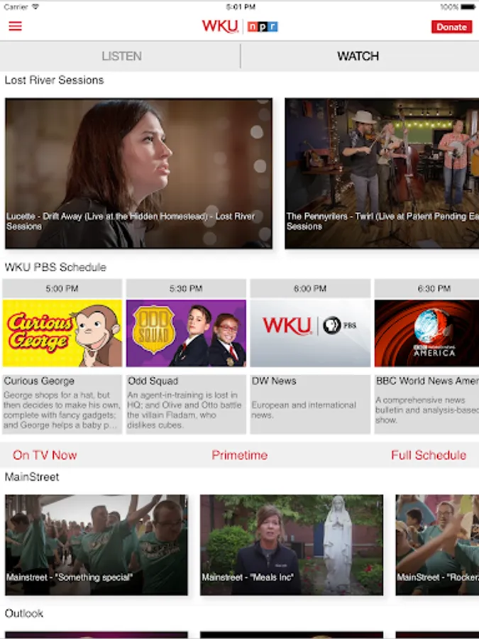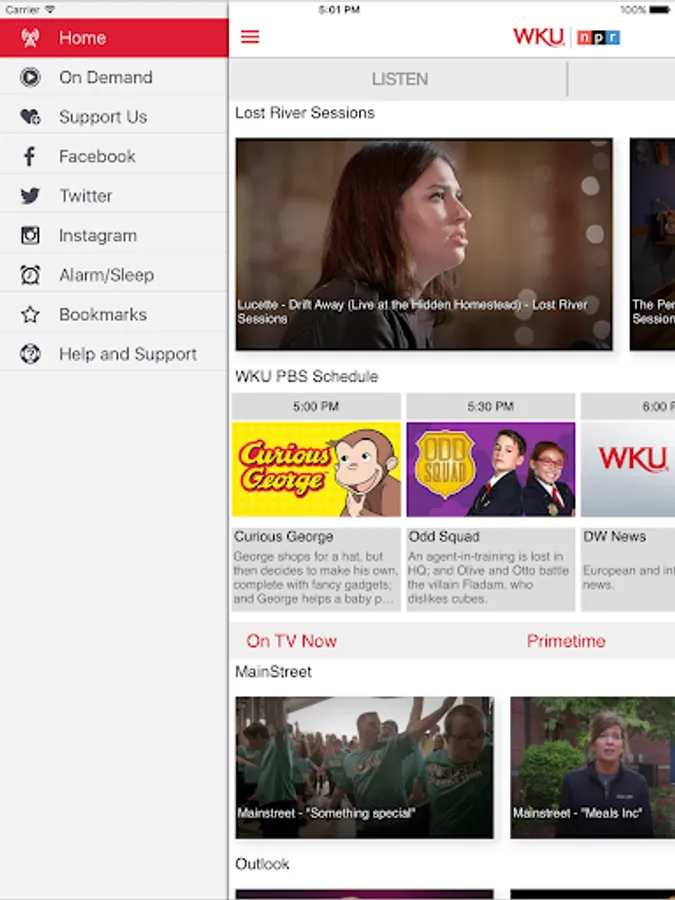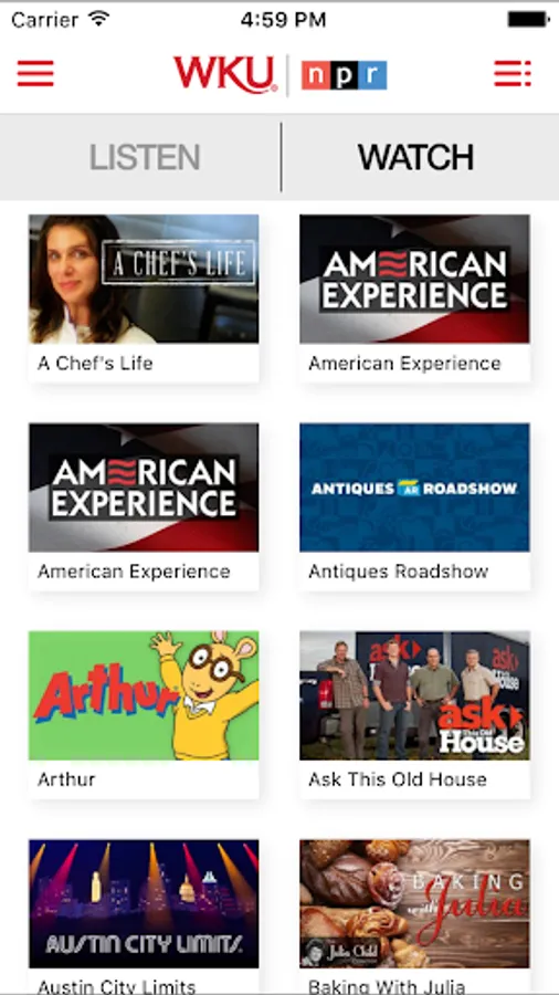 The WKU Public Media App allows you to watch and listen to all of WKU’s programs, Radio and TV! The app provides On-Demand content of all your favorite shows, live streaming of the radio channels, PBS Kids! content with parental controls, easy access to the live Radio and TV program schedule plus the ability to explore additional content!