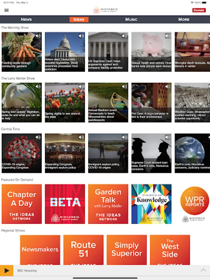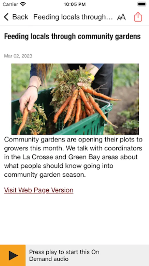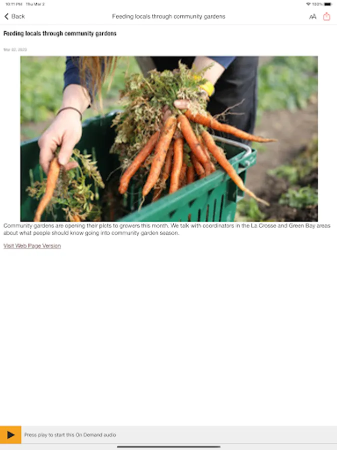 • The Wisconsin Public Radio App displays the web page associated with the program or program segment you are listening to On Demand so you can explore for more information.