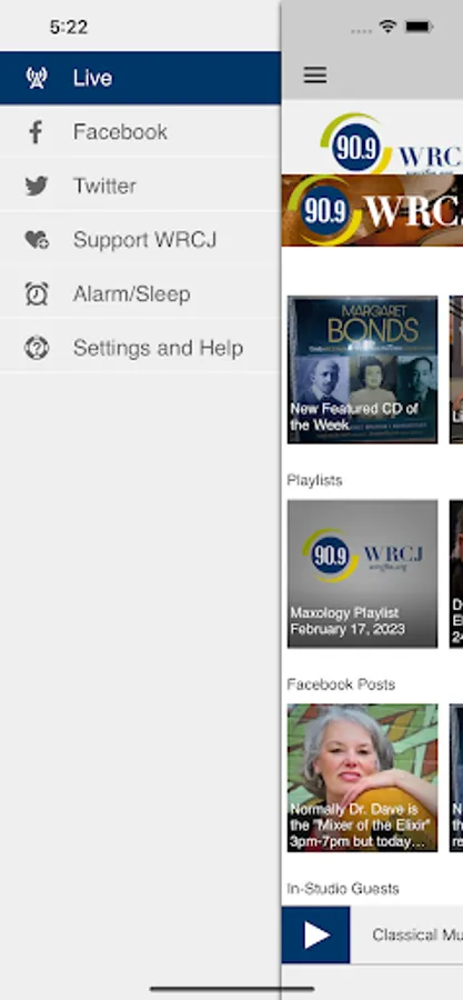 The WRCJ App allows you to listen to WRCJ’s great music programming, pause and rewind the live audio, view the program schedule, and wake up to WRCJ with the alarm clock.