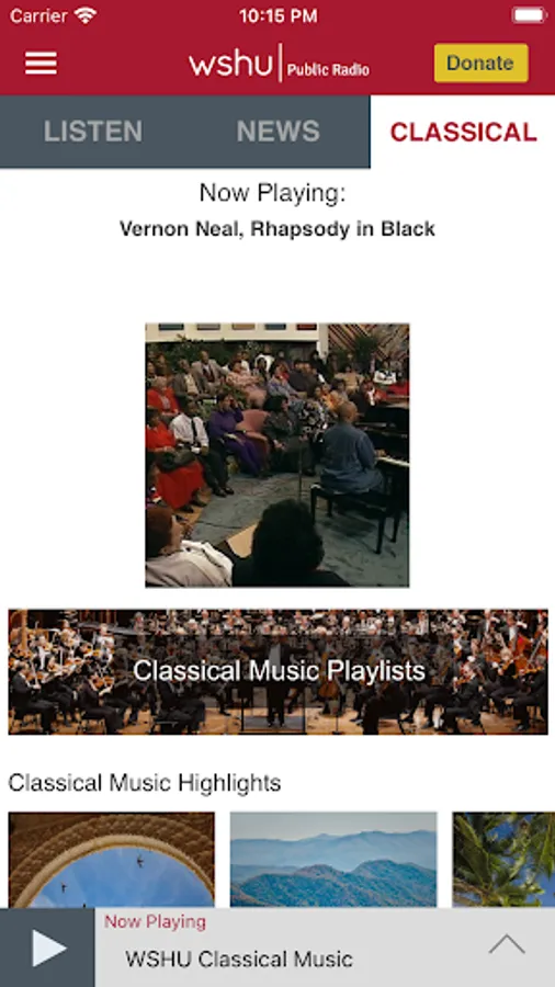 • Listen to live streams from WSHU even while traveling! Start the app and your favorite station starts playing – no clicks to start listening.