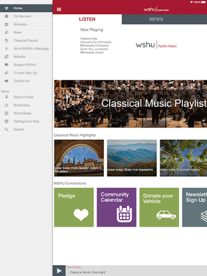 The WSHU Public Radio App allows you to listen to WSHU live, pause and rewind the live audio, and view the program schedule for all the WSHU streams at once! You can explore On Demand content, search for stories, bookmark a story for later, and wake up to WSHU with the alarm clock!