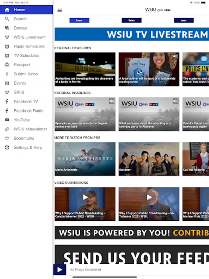 The WSIU App is brought to you by the people at WSIU and Public Media Apps. We work to provide our valued viewers, listeners and members with great solutions to find the content you want…Anywhere…Anytime.