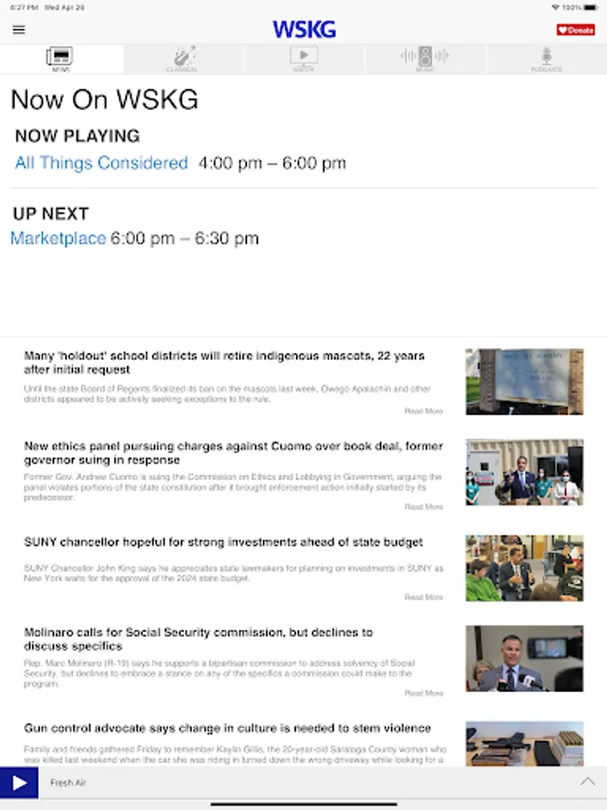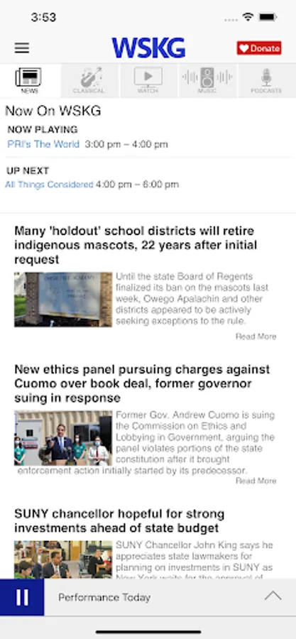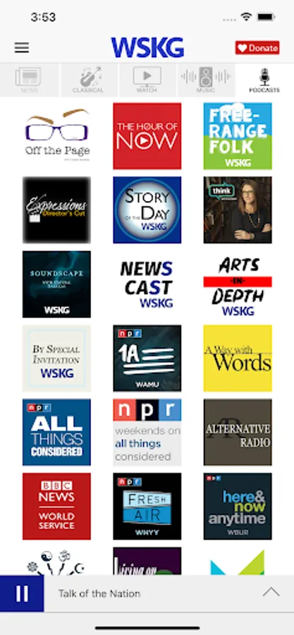 • WSKG Radio (NPR News, BBC, etc) "Trusted News, Thoughtful Conversations