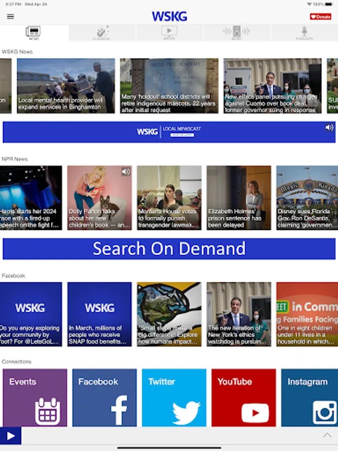 Based upon the broadcast and online services of WSKG Public Media, Binghamton, NY. The WSKG app features: