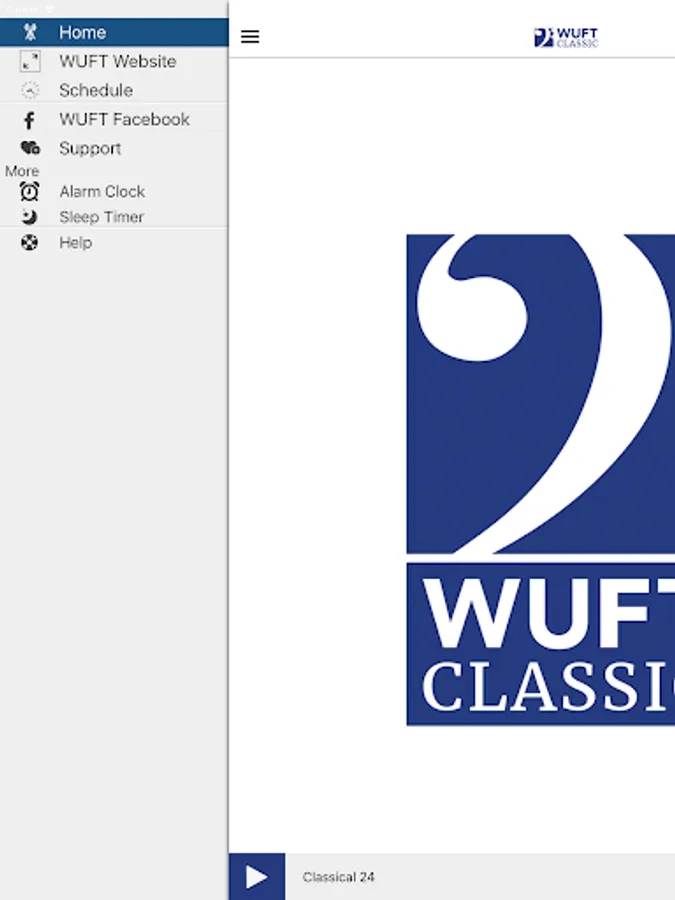 The WUFT Classic Public Radio App allows you to listen to WUFT Classic, pause and rewind the live audio, view the program schedule, and wake up to WUFT with the alarm clock!