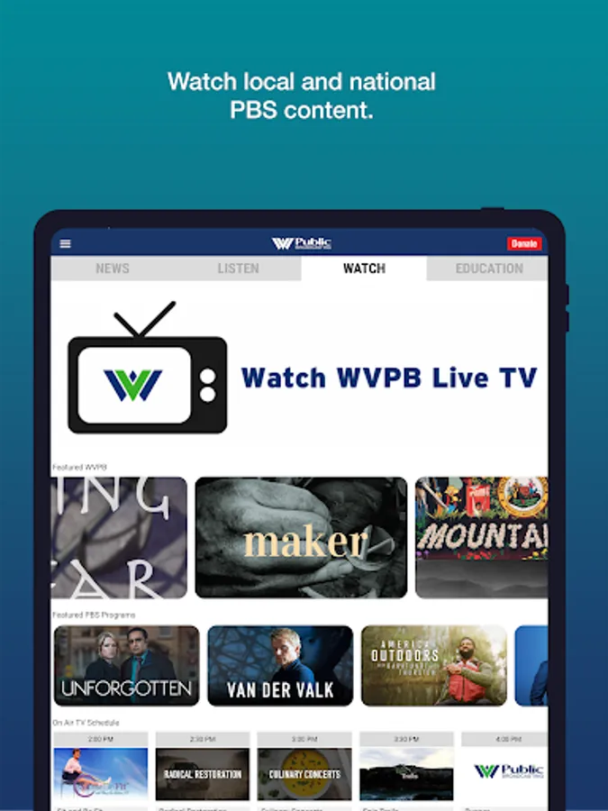 The WVPB App allows you to watch and listen to all of WVPB’s programs, Radio and TV!