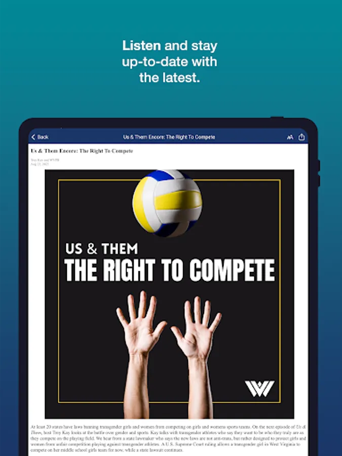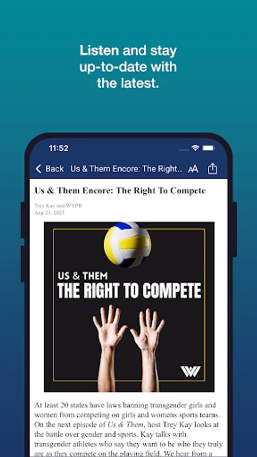 • The WVPB Public Media App displays the web page associated with the program or program segment you are listening to On Demand so you can explore for more information.