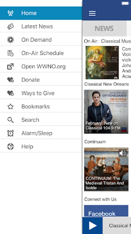 • Listen to live streams from WWNO even while traveling! Start the app and your favorite station starts playing.