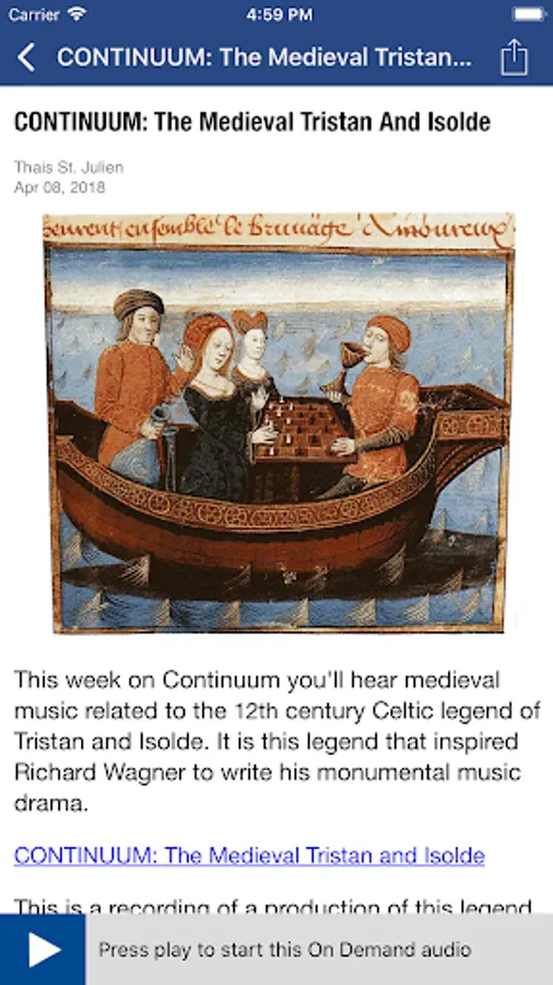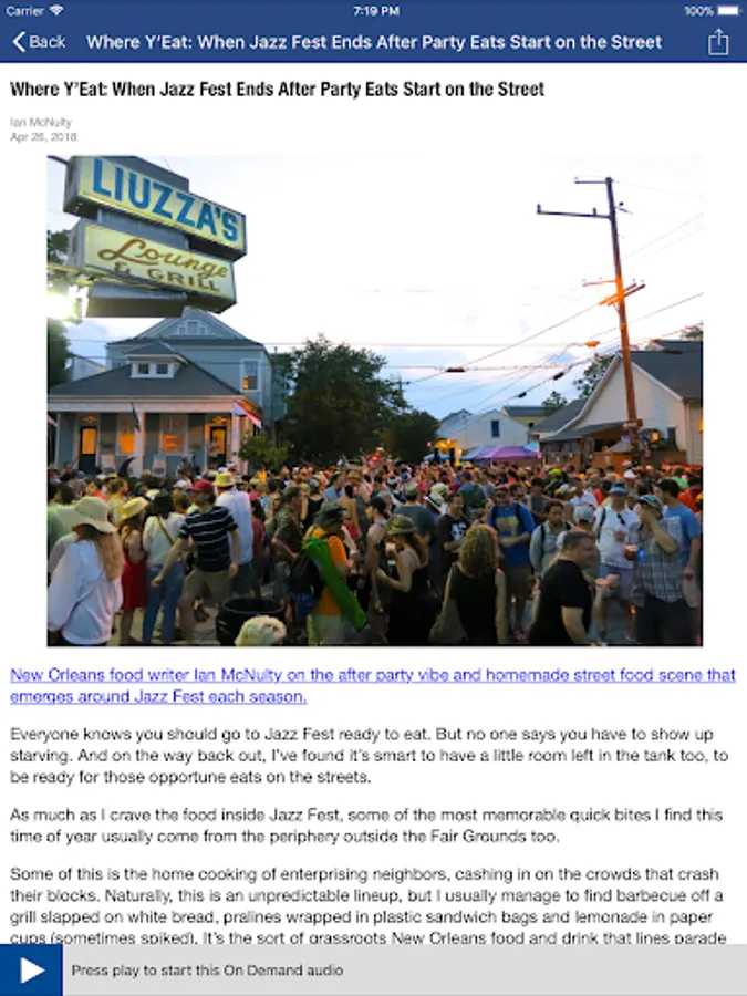 • The WWNO Public Media App displays the web page associated with the program or program segment you are listening to On Demand so you can explore for more information.