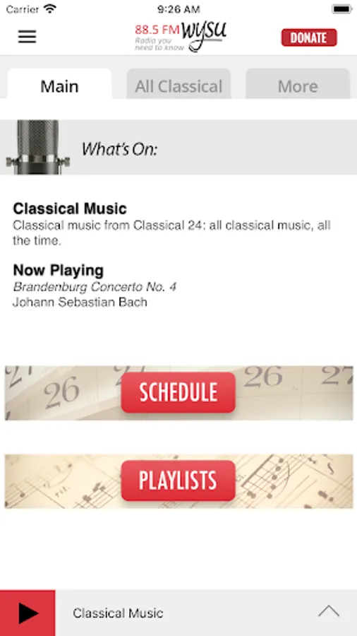 • Listen to live streams from WYSU even while traveling! Start the app and your favorite station starts playing – no clicks to start listening.