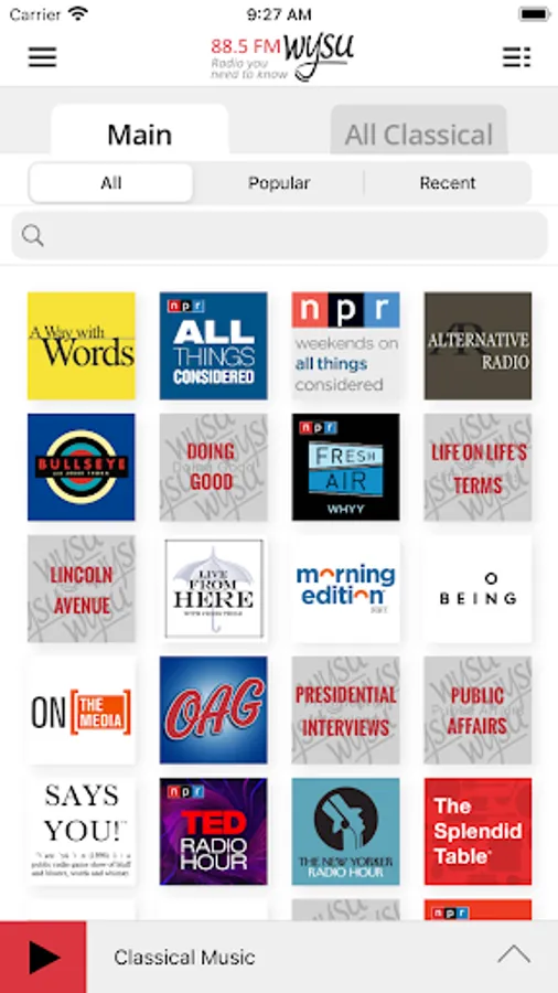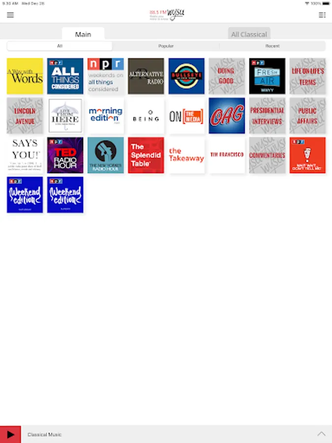 • Access public radio programs from multiple content providers (NPR, PRI, APM and WYSU) easily and quickly.