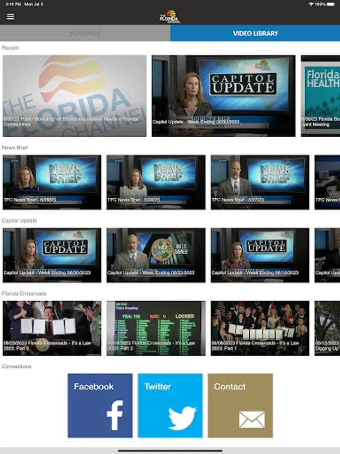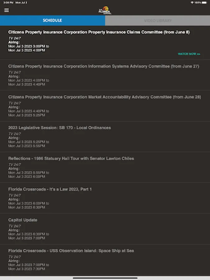 View a schedule of events and see updates in real-time. Watch LIVE events, gavel-to-gavel. Get access to TheFloridaChannel.org’s complete video archive, including programs like Capitol Update, Florida Face to Face, Florida Crossroads and News Brief.