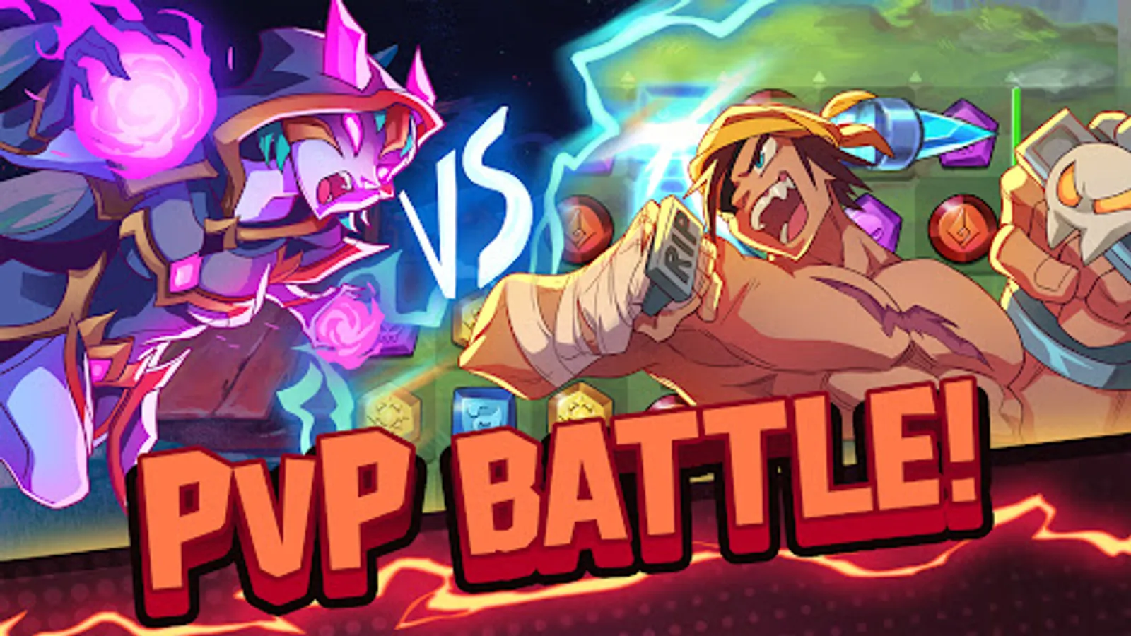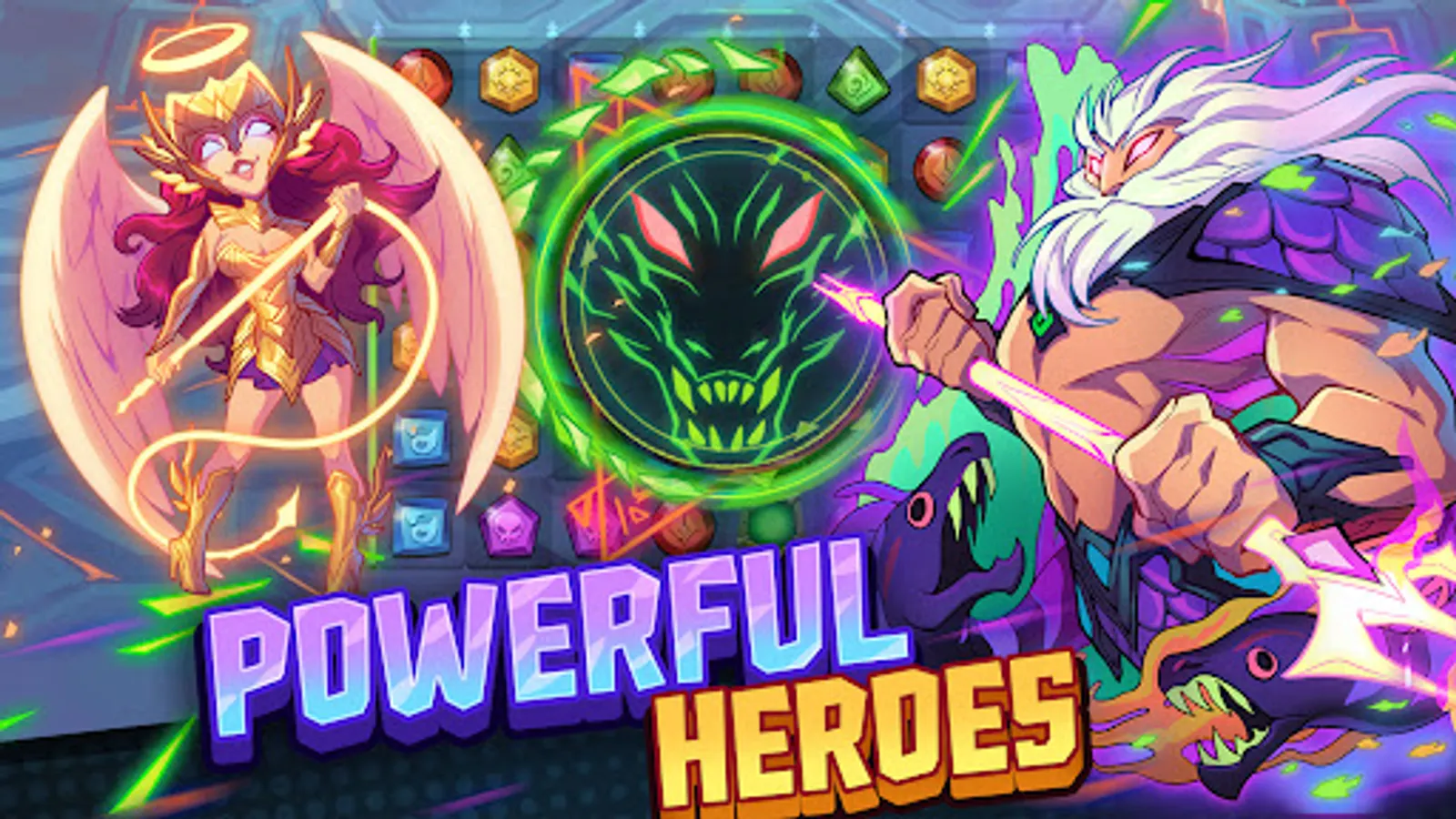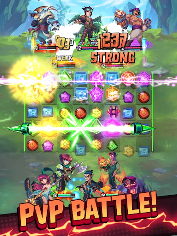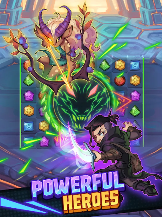 You and the enemy take turns solving match 3 puzzles on the same board. Form powerful match 3 combos to smite the enemy heroes or play defensively to deny their most powerful attacks. Make fun tactical tile matches to defeat the enemy in PvP combat.