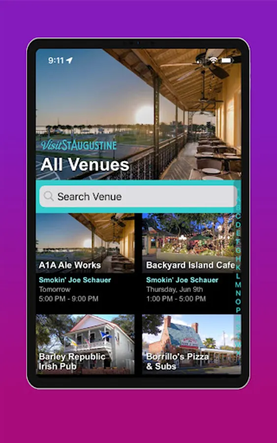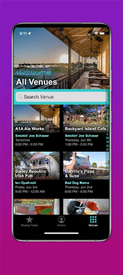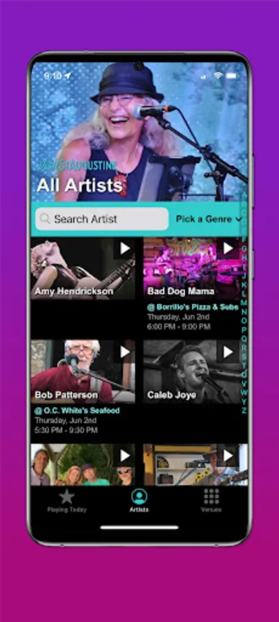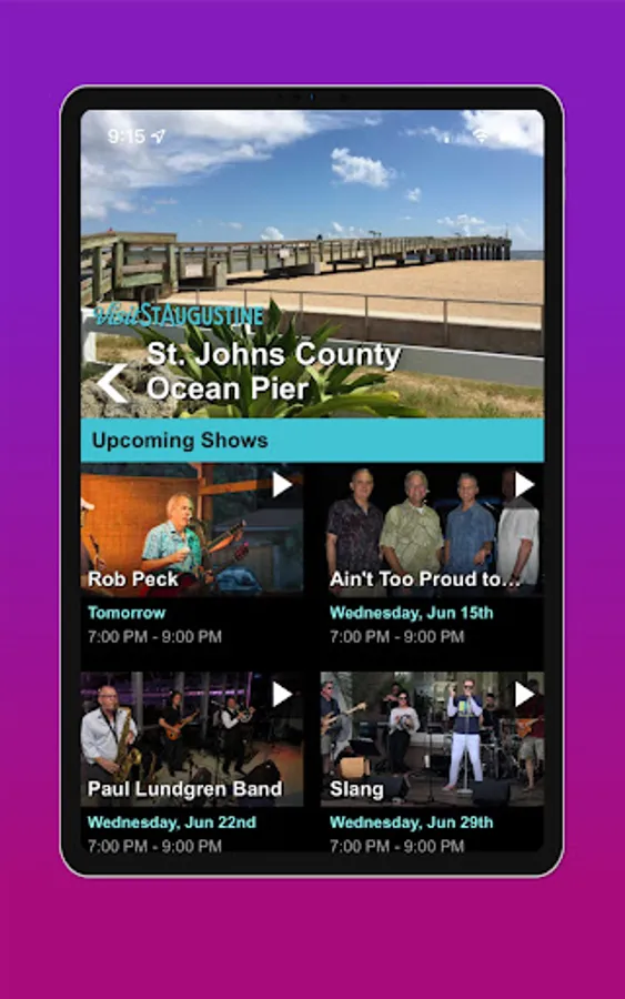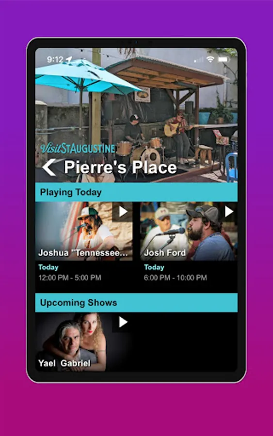 We have profiled over 600 local and frequently visiting musicians, with full artist descriptions, genres played, and instrumentation. Tap on videos of performances and hear a band’s playing style before heading out to the venue. The LIVE MUSIC app also lists over 100 live music venues in St. Johns County, from the southern tip of Anastasia Island to Ponte Vedra in the north and west to the St. Johns River.