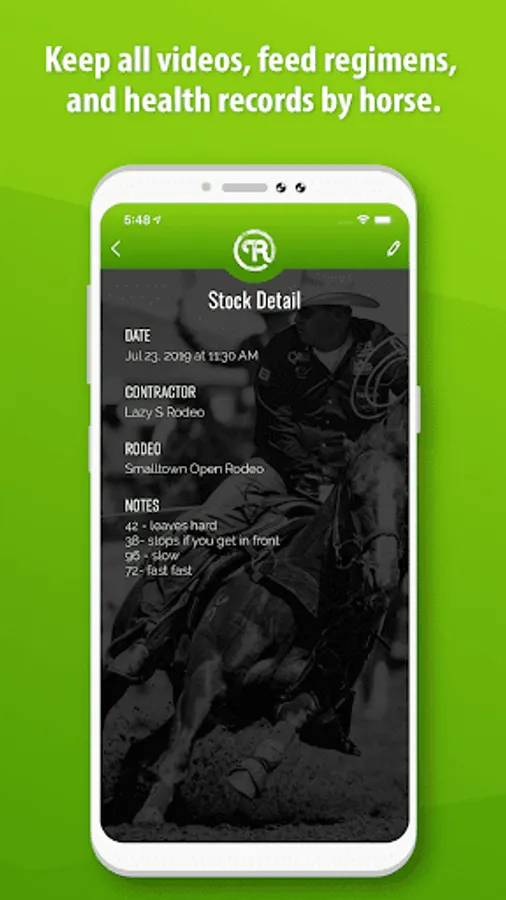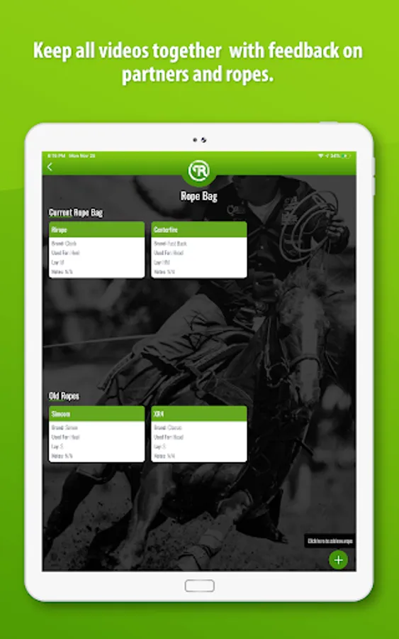 See charts of how well you score or rope on each horse, keep videos filed for each horse, as well as your results and notes on performance.