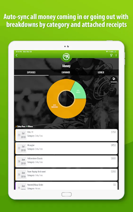 Let us take on some of the stress of the sport by tracking and categorizing feed, entry, vet, fuel and maintenance costs for you.