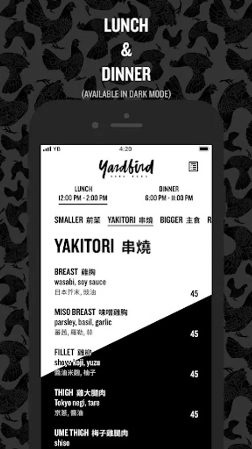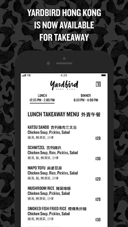 We have always believed that sharing is caring and there's no better way to share the Yardbird HK experience than by making it SUPER EASY to enjoy our food and beverages in the comfort of your own home! Follow these simple steps to take Yardbird HK to go (pick up only):