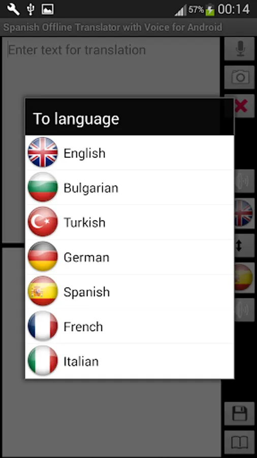 - fully functional offline translator between English, Spanish, French, German, Italian, Turkish, Chinese and Bulgarian without any internet connection;