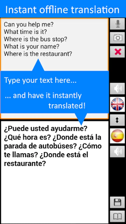 Offline* speech translator, dictionary and phrasebook -- the ultimate foreign language text translation tool for English, Spanish, French, German, Italian, Turkish, Chinese and Bulgarian when you are abroad! Save on data roaming charges when you travel!