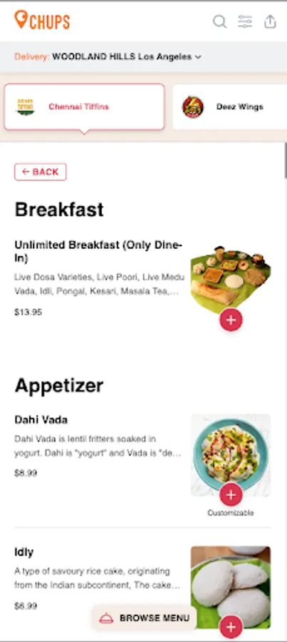 Easy Search: Looking for something specific… say ‘Indian’? Search for ‘Indian’ and the list will pull out the nearest local Indian Pop Ups or Restaurants. Now pick your place and place your order for dine-in, to go or delivery.