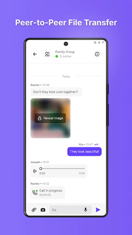 END-TO-END ENCRYPTED: We encrypt all your communication end-to-end, including messages, voice/video calls, group chats, files, and status messages. Your conversation stays private with just your intended recipient. Our encryption is powered by the reputable open-source NaCl cryptography library, with keys generated and securely stored on your device to negate backdoor access or copies.