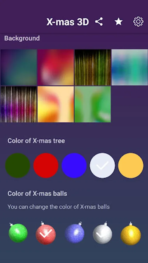 Choose the position and color of Christmas trees and decorations. Change different backgrounds ,