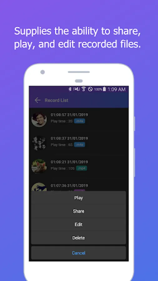 - Provides automatic save and shutdown of recordings before the smartphone runs out of battery during recording.