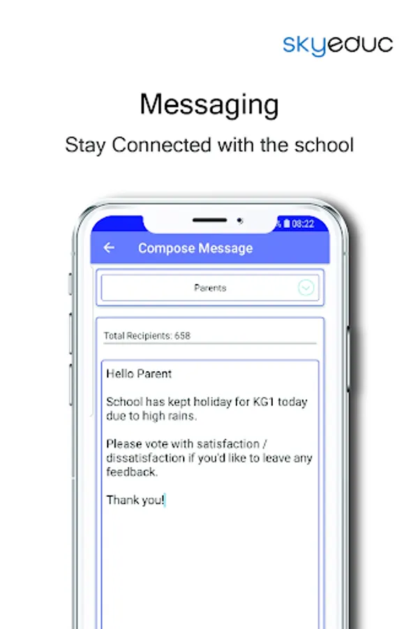 - Automatically notify parents about attendance, fee payment alerts, progress of their children, report cards, homework, time tables, schedules, holidays and more
