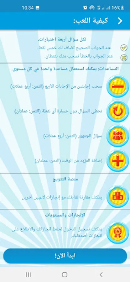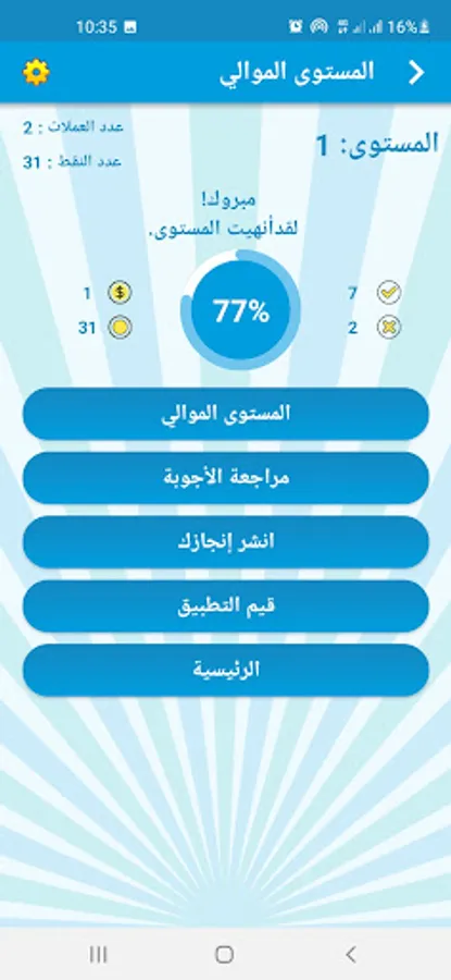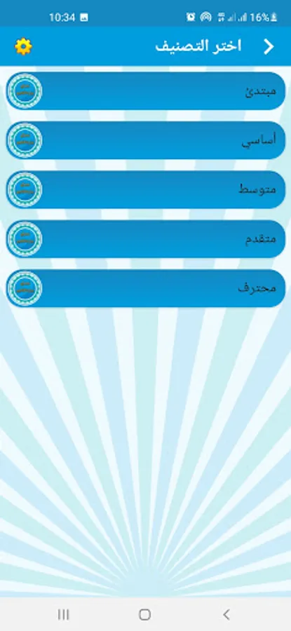 يضم التطبيق 5 مستويات: مبتدئ، أساسي، متوسط، متقدم ومحترف