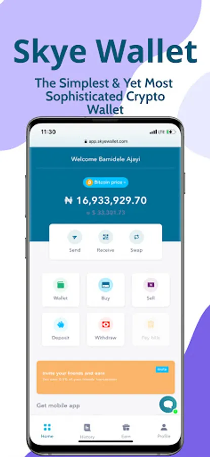 Skye Wallet is the simplest and most secure way to Buy, Sell, Swap, Send and Receive Bitcoin and Cryptocurrency in Nigeria.