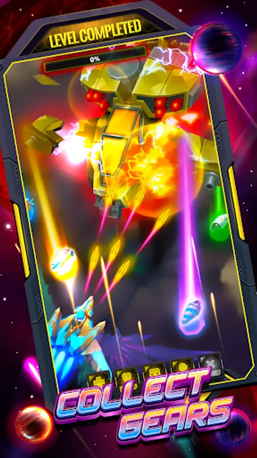 One day, a mysterious alien army from a different dimension appears and attacks the border planets. The fight for mankind survival begins. As a veteran spaceship striker pilot, you have been called to defend the galaxy against invader enemies, and become one of the guardians of the galaxy.