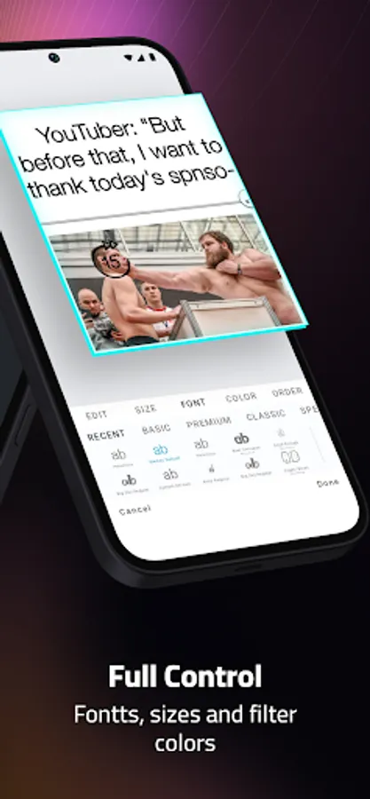 🔡 Not only that, but you can also choose different meme text layouts. From using text only, to putting the meme caption on top or below the image, you can give context and make memes with text quickly. Alternatively, you can customize your memes with our video meme maker by choosing from a variety of fonts, text lines, and color filters as well as amazing features to add text, covers and stickers.