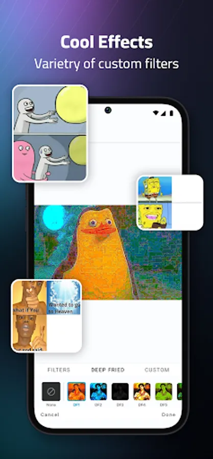 ✂️ With a simple and easy to use interface, create epic memes with ease! Pick from the available templates or create a custom meme with your media. Add text overlays using our meme creator, and pick from tons of trending frames. Do it the same with videos and GIF memes. Then use the easy meme builder to share them with your friends and family.